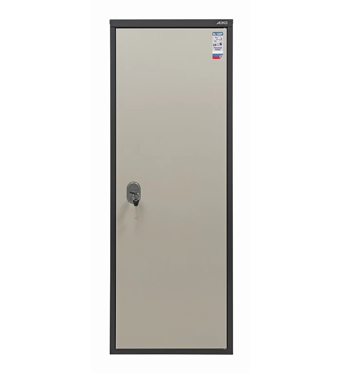 Шкаф Aiko SL-125Т – это прочное сварное изделие из стальных листов толщиной 1.2 мм. На дверь устанавливается трёхригельный ключевой замок «Практик» сувальдного типа.